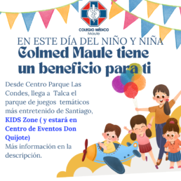 Colegio Médico del Maule @colmedmaule te invita a celebrar este Día del Niñ@ en KIDS ZONE @kidszonechile.cl TALCA. Desde Centro Parque Las Condes, llega al Centro de Eventos Don Quijote, el parque temático más disfrutado en las vacaciones de invierno, con pinta caritas, shows, juegos inflables y mucho más.
