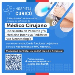 Proceso de selección para Médico Cirujano Especialista en Pediatría, Medicina Intensiva Pediátrica y/o Neonatología, con encomendación de funciones de jefatura, para servicio Neonatología y UPC Neonatal, contrata Ley 19.664 (22, 33 o 44 horas).