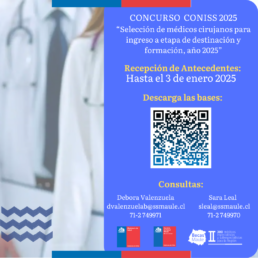 CONCURSO CONISS 2025. Selección de médicos cirujanos, para ingreso a etapa de destinación y formación año 2025. Recepción de antecedentes, hasta el 3 de enero de 2025.